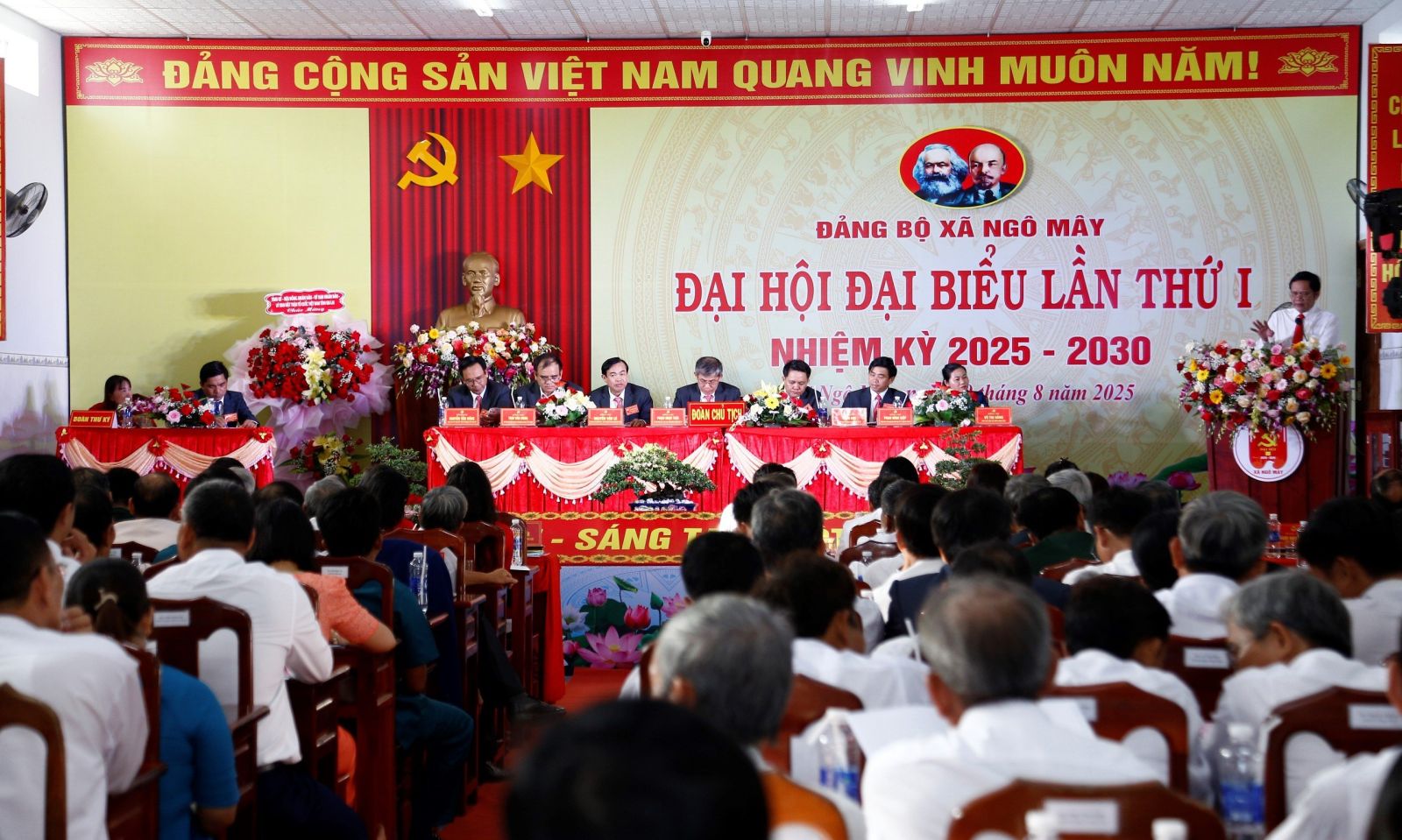 Chiều 19/8, Đảng bộ xã Ngô Mây đã long trọng tổ chức phiên chính thức Đại hội Đại biểu Đảng bộ xã lần thứ I, nhiệm kỳ 2025-2030. Tham dự và chỉ đạo Đại hội có các đồng chí: Trần Cang, UVBTV Tỉnh uỷ, Giám đốc sở Tài chính; Huỳnh Thuý Vân, Tỉnh uỷ viên, PCT HĐND tỉnh; Nguyễn Thị Thanh Lịch, Tỉnh uỷ viên, Phó CT UBND tỉnh; cùng lãnh đạo một số sở, ban, ngành của tỉnh; lãnh đạo các địa phương lân cận; các đồng chí nguyên lãnh đạo xã qua các thời kỳ và 161 đại biểu chính thức đại diện cho 668 đảng viên trong toàn Đảng bộ.