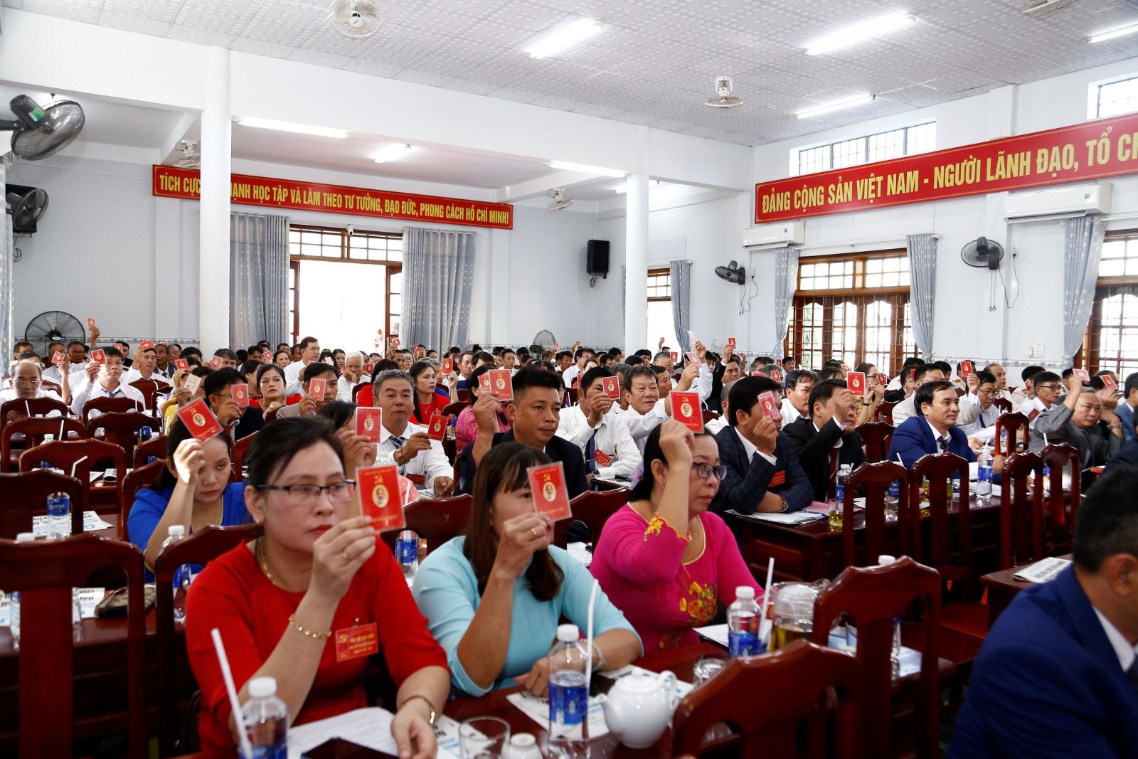 Các đại biểu tham dự Đại hội biểu quyết, thống nhất các chỉ tiêu, nhiệm vụ thực hiện trong nhiệm kỳ mới