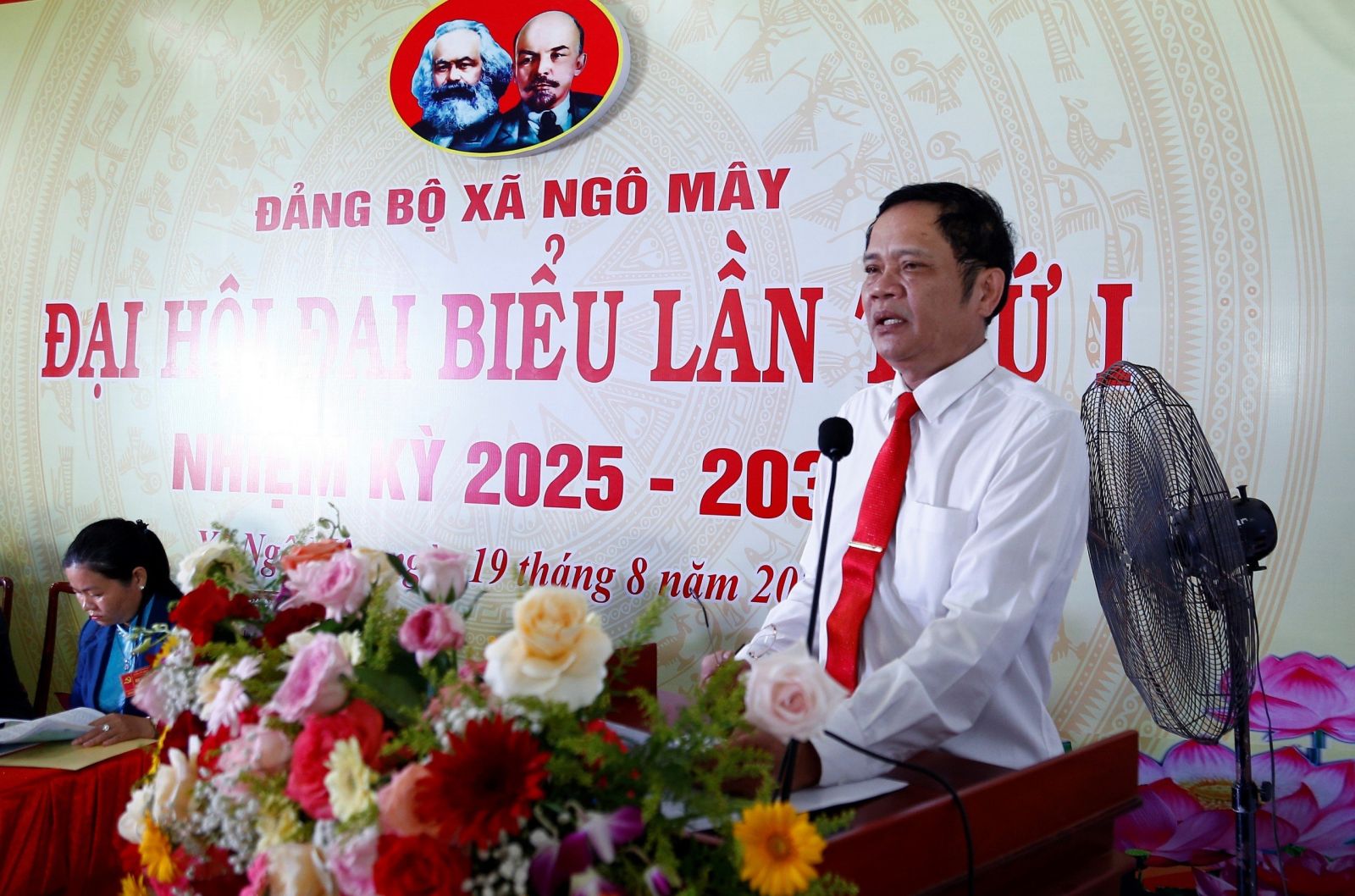 Phát biểu chỉ đạo Đại hội, Ủy viên Ban Thường vụ Tỉnh ủy, Giám đốc Sở Tài chính Trần Cang ghi nhận và biểu dương những kết quả Đảng bộ xã Ngô Mây đạt được nhiệm kỳ qua; đề nghị thời gian tới, Đảng bộ xã tiếp tục phát huy dân chủ, giữ vững kỷ cương, tập trung lãnh đạo thực hiện tốt nhiệm vụ chính trị đề ra. Hoàn thiện bộ máy chính quyền tinh gọn, hoạt động hiệu lực, hiệu quả, gần dân, sát dân, đáp ứng kỳ vọng của Nhân dân.